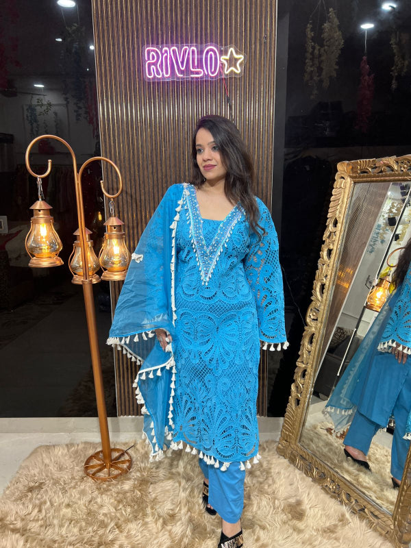 Azure Elegance – Embroidered Chikankari Suit Set RC301