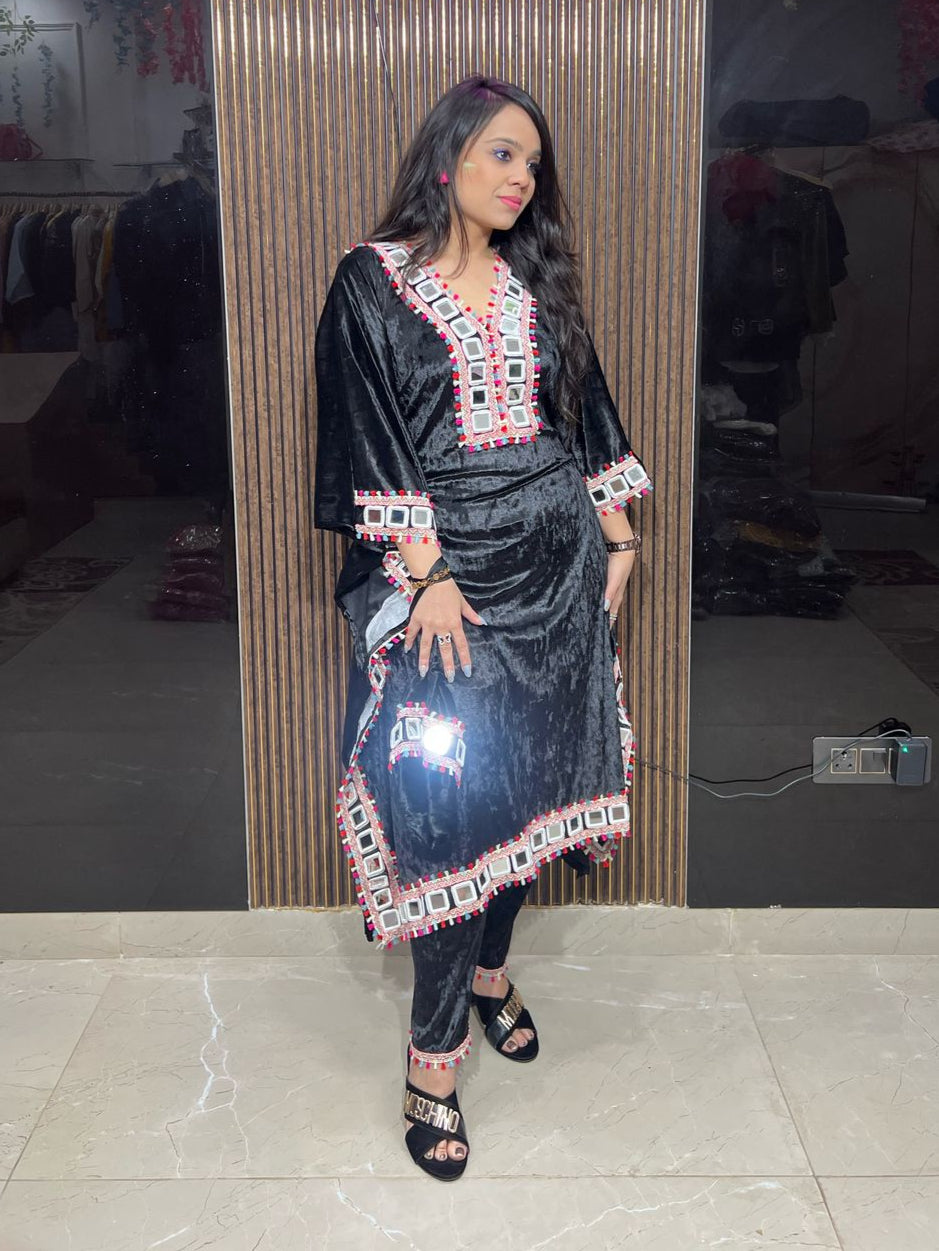 This Cute Mirror Work Co-ord Set combines stylish design with intricate mirror work for a unique and fashionable look. Made from high-quality materials, it offers comfort and durability. Perfect for any occasion, this set is a must-have for your wardrobe.