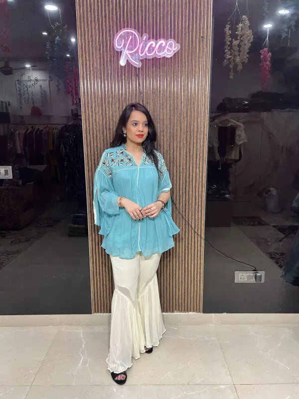 This Beautiful Embroidery Co-ord Set is expertly crafted with intricate embroidery, creating a stunning and unique design. Made from high-quality materials, it offers both comfort and style. Perfect for any occasion, this set is sure to make a statement and turn heads