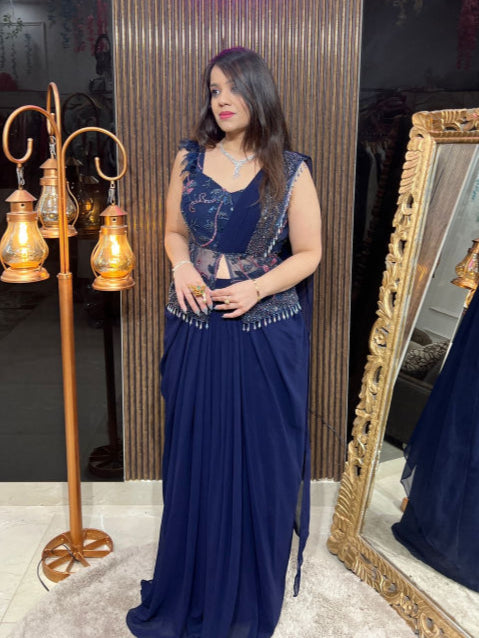 From the merchant: Make a statement with our Stunning Indo Western Dress. This dress combines traditional Indian and Western styles for a unique and eye-catching look. Perfect for special occasions or to elevate your everyday wardrobe