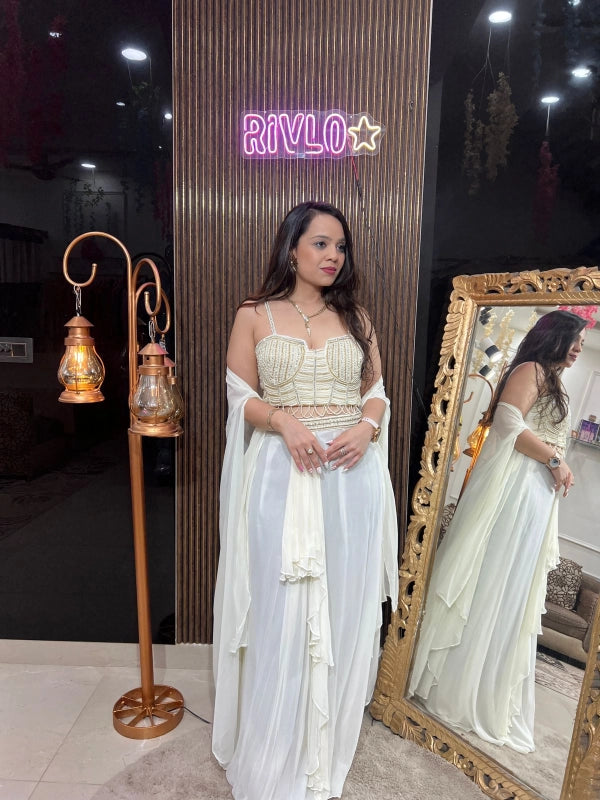 Ivory White Cape Drape with Beaded Corset Blouse RC219