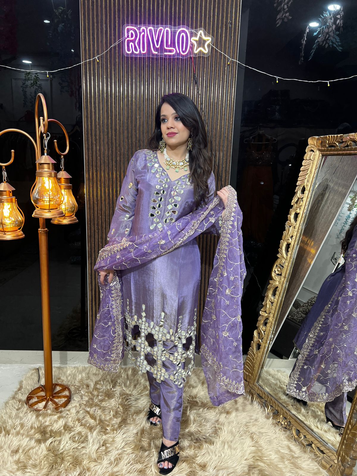 Lavender Mirror Work Kurta Set with Dupatta RC440