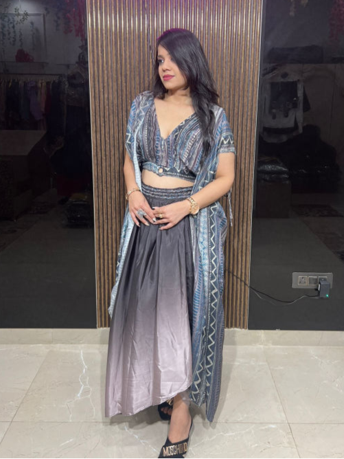 This Beautiful 3Piece Indo Western Dress is a stunning addition to any wardrobe. With its elegant design and intricate detailing, it exudes a timeless charm. The perfect blend of traditional and modern styles, it is sure to make a statement. Made with high-quality materials, it offers both comfort and style. Elevate your look with this exquisite piece