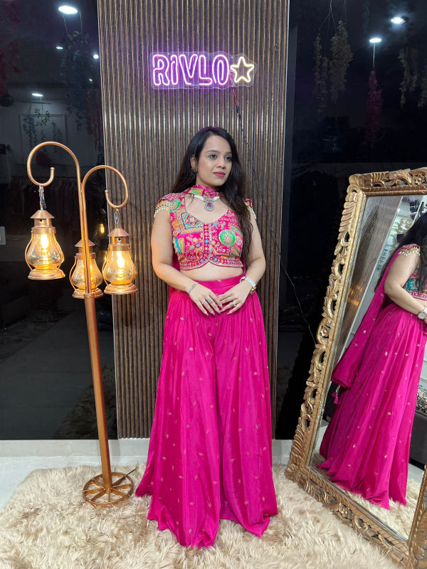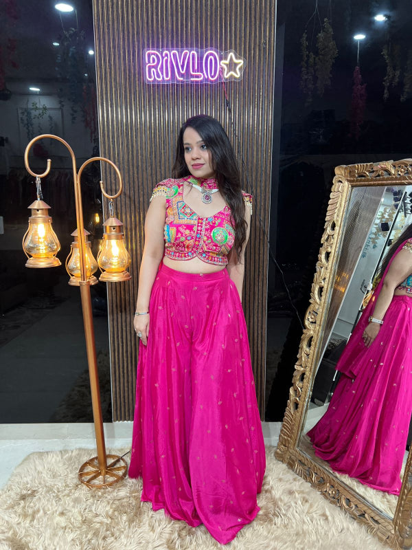 Channel vibrant festive vibes with our Rajasthani Radiance lehenga set – a bold and colorful fusion of traditional craftsmanship and modern silhouette. This head-turning ensemble is perfect for Navratri, mehendi functions, or any celebration that calls for dancing in style!